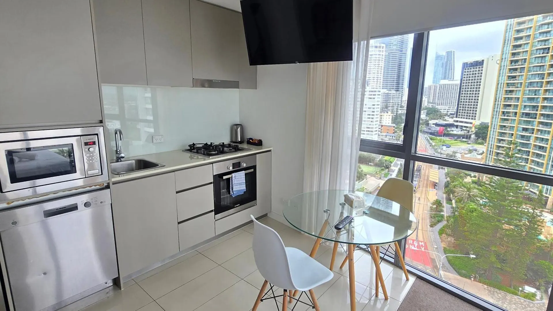 The nearest airport is Gold Coast, 25 km from the apartment, and Surfers Paradise North bus station is 100 metres away.